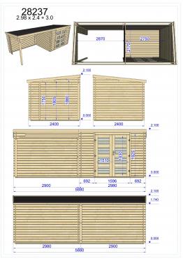 - Jumts no 19 mm spundētiem dēļiem, vēja dēļi;