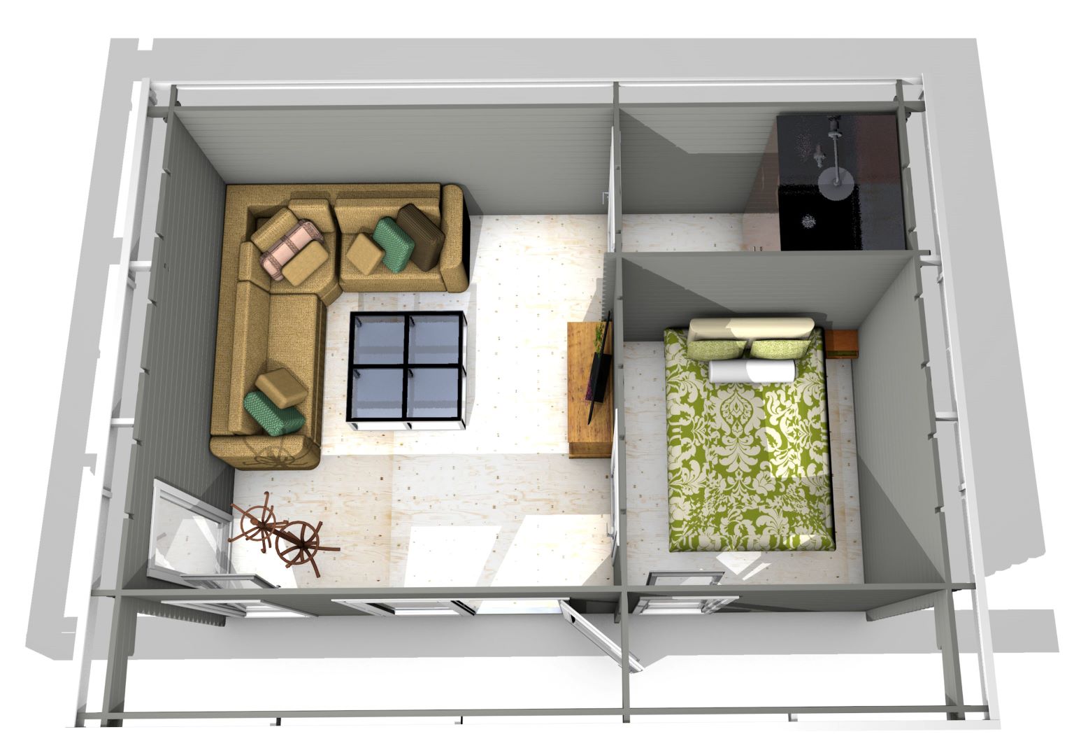 - Grīda no 19 mm dēļiem, grīdlīstes;