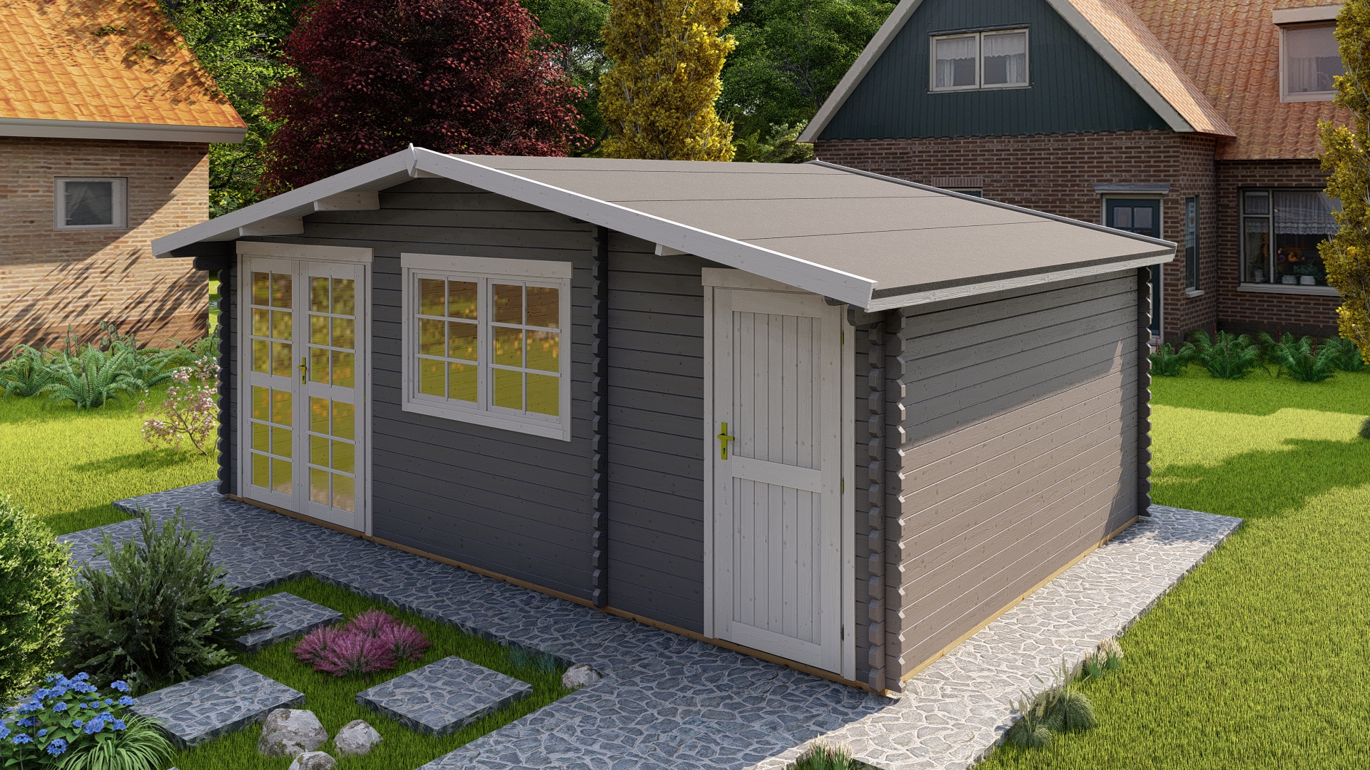 - Stikla logi koka rāmjos;