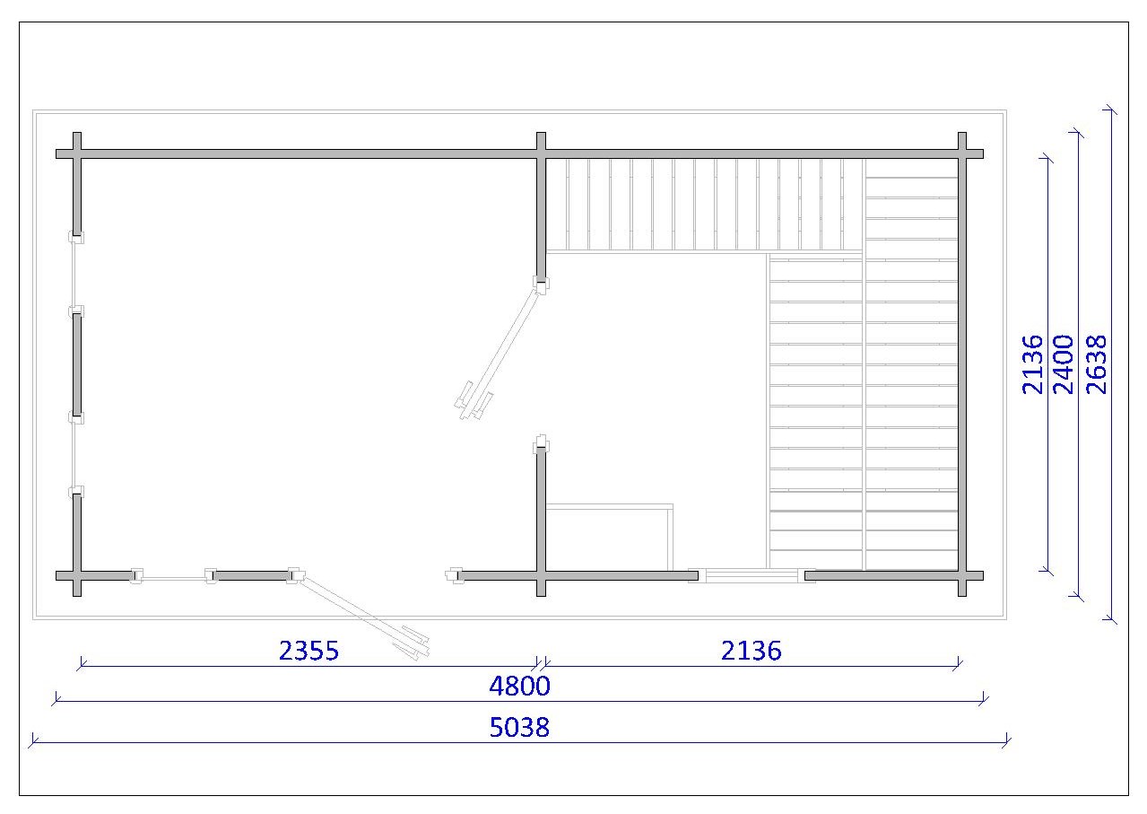 - Grīda no 28mm bieziem spundēdiem dēļiem;