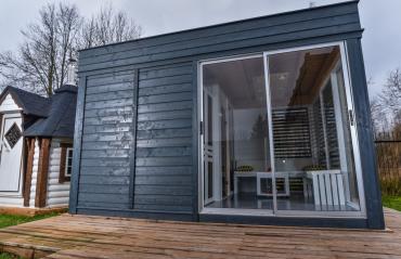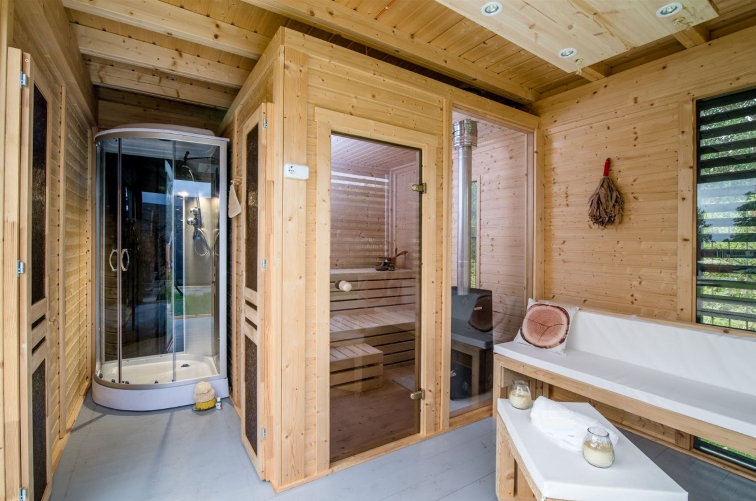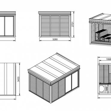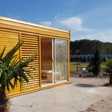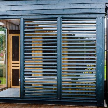 Piedāvājam mūsu jauno āra pirts moduļu sēriju, kas apvieno modernu dizainu un īpašu funkcionalitāti. Šie modernie pirts moduļi izskatās tikpat labi gan no iekšpuses, kā no ārpuses, apvienojot komfortu un mūsdienīgumu, tajā pašā laikā saglabājot mūsu pirts tradīcijas un ekoloģiju, jo šīs pirtis ir veidotas tikai no koka kombinācijā ar augstākās kvalitātes papildmateriāliem. Moduļi jau standarta komplektācijā tiek piedāvāti ar siltinātām sienām un jumtu. No ārpuses saunas apdarē izmantoti 18mm priedes vagondēļi, bet iekšpusē apdare veikta ar 12mm priedes vagondēļiem. Pamatkomplektācijā ietilpst augstākās kvalitātes apses, vai melnalkšņa lāvas soli ar atzveltnēm !