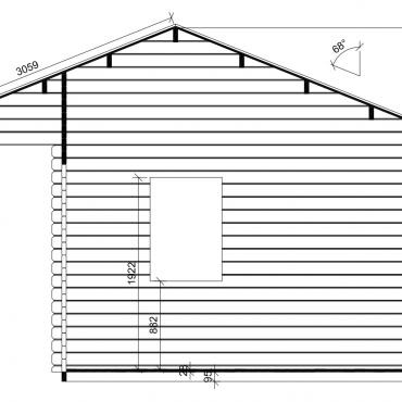 - Jumts no 19 mm spundētiem dēļiem, vēja dēļi;