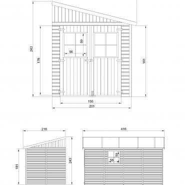 - Izmērs samontētā veidā H243x216x416cm