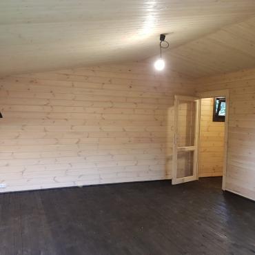 - Grīda no 19 mm spundētiem dēļiem, grīdlīstes;