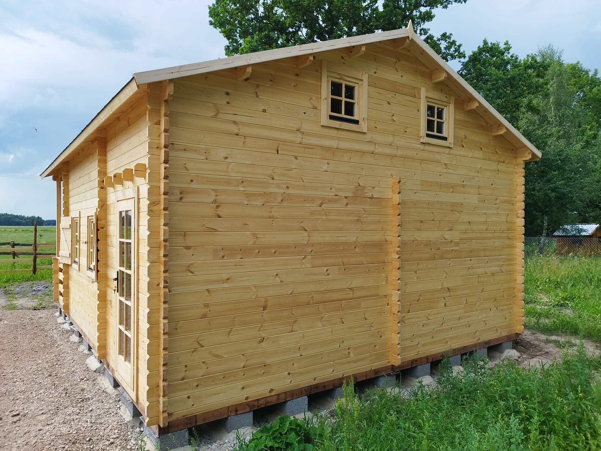 - Mājas sienas no 44mm frēzētām brusām (egle);