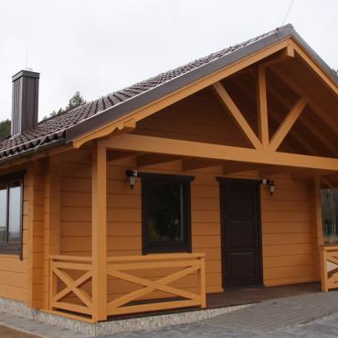 - Ārsienas un starpsienas no profilētām, frēzētām līmbrusām ar krusta stūra vai pilsētas stūra savienojumiem. Iespējamas starpsienas no koka karkasa materiāla;
