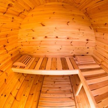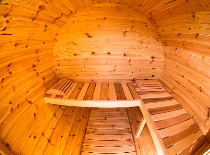 - В парилке панорамное окно на половину стены из тонированного закаленного стекла;