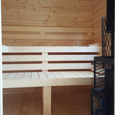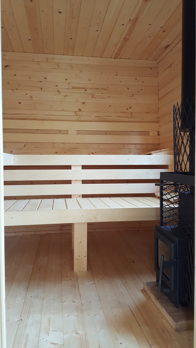 - Двери парилки из клееного дерева с закаленным стеклом;