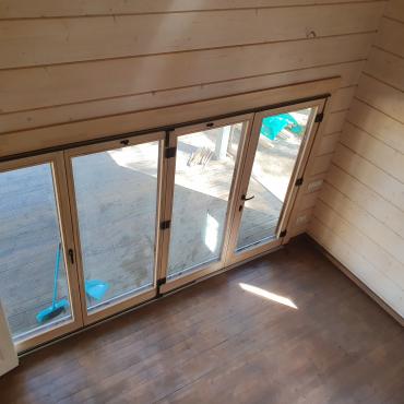 - Конструкция перекрытия (если в проекте дома предусмотрено два этажа) - балки перекрытия, половые лаги пола второво этажа, шпунтовонная половая доска 28мм, вагонная доска отделки потолка первово этажа, плинтуса;