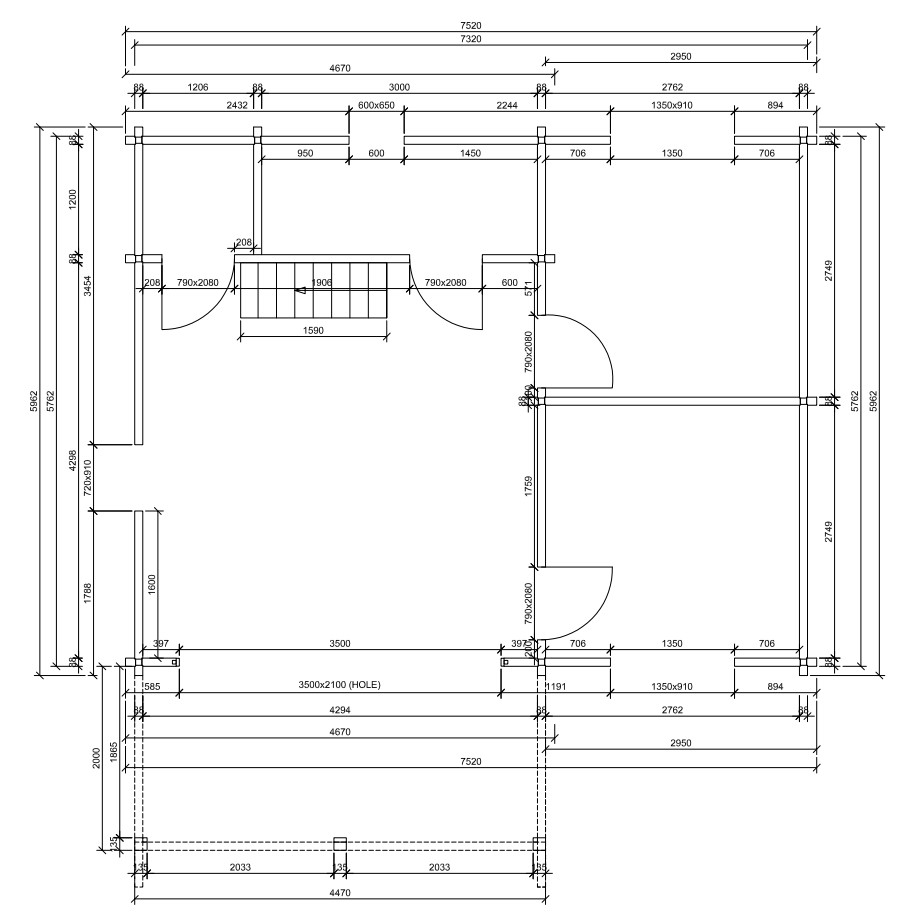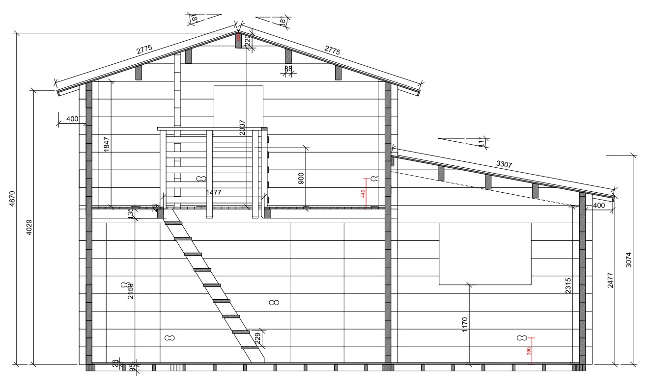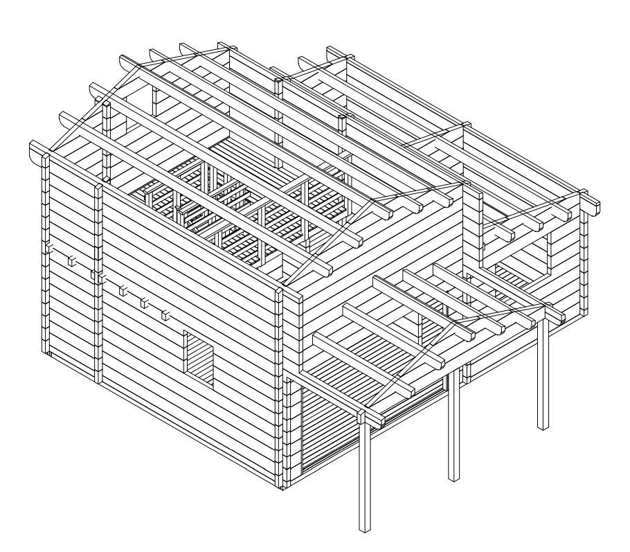 - Наружные и внутренние стены из профилированново клеенново бруса с крестообразными соеденениями или соеденениями городсково типа. Возможны каркасные перегородки;