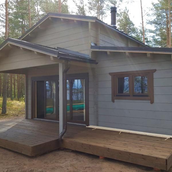 - Конструкция терасы (если предусмотрена в проекте дома) - под довлением импрегнированные брусья, терасовая доска 30мм, перила;