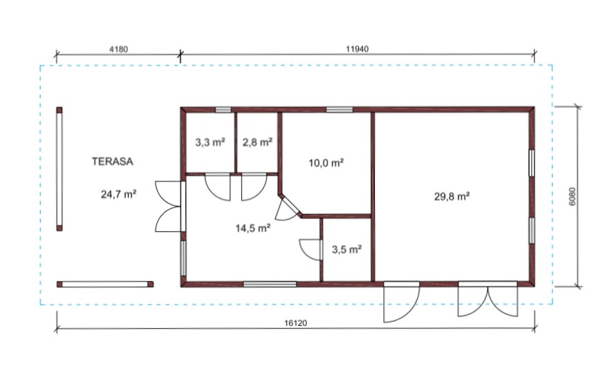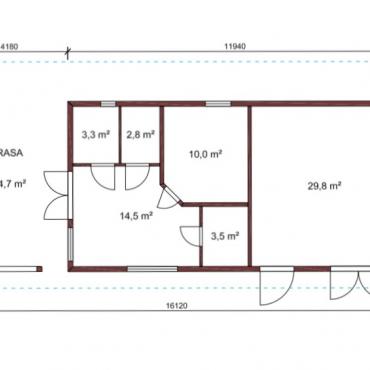 - Наружные и внутренние стены из профилированново клеенново бруса с крестообразными соеденениями или соеденениями городсково типа. Возможны каркасные перегородки;