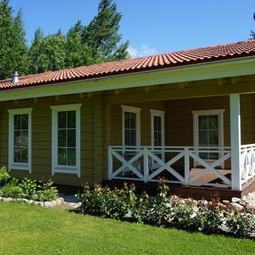 - Конструкция терасы (если предусмотрена в проекте дома) - под довлением импрегнированные брусья, терасовая доска 30мм, перила;