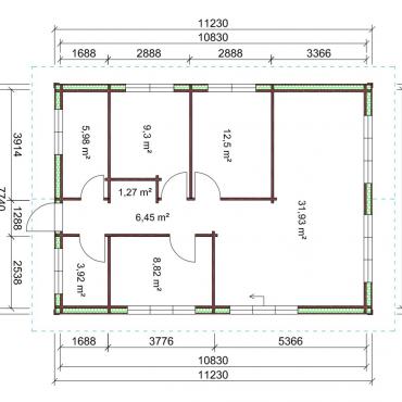 - Конструкция пола - импрегнированные под давлением фундаментные брусья, половые лаги. Шпунтовонаая половая доска 28мм, плинтуса. Конструкция подготовленна для укладки материалов теплоизоляции;