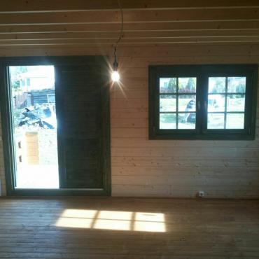 - Окна и двери со стеклопакетами в деревянных рамах;