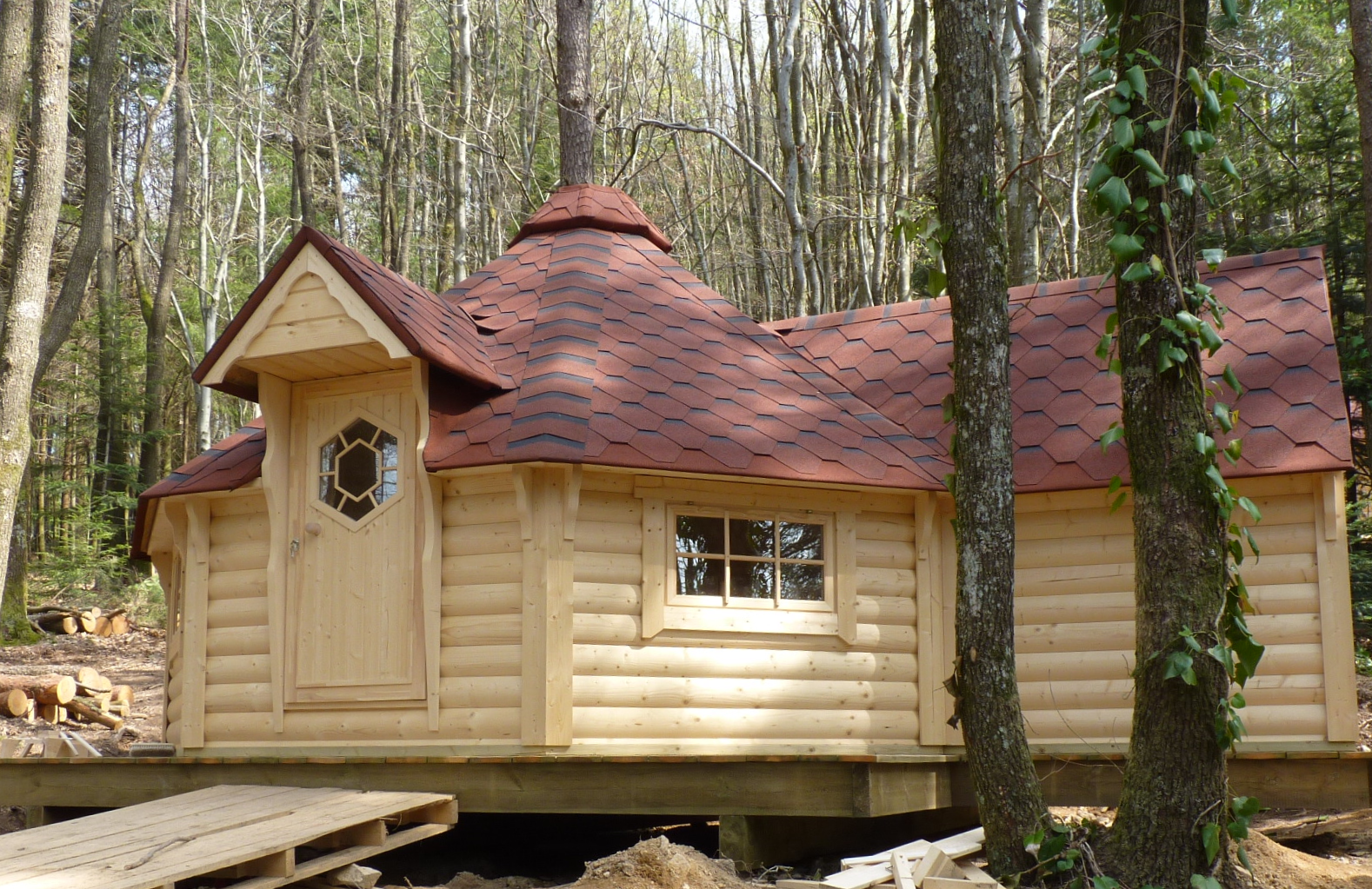 - Jumta segums bitumena šindeļi ( krāsa pēc izvēles - sarkana, zaļa, pelēka vai melna);