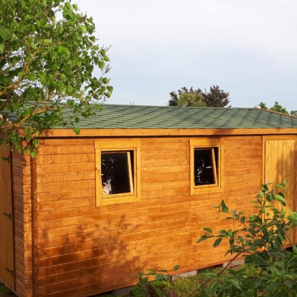 - Пол из 19мм шпунтовaнyой доски с пропитанными фундаментными брусьями 40х60мм +450 Eur