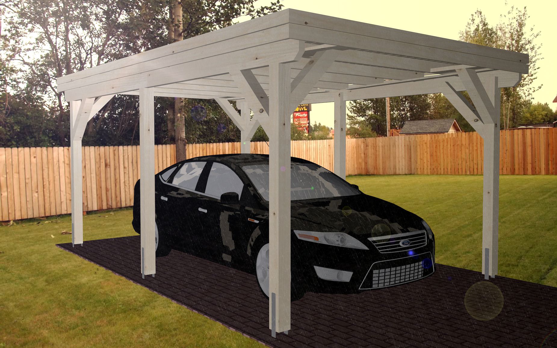 - Каркас навеса изготовлен полностью из клеенново бруса (конструкция на 70% прочнее чем из массивново бруса):