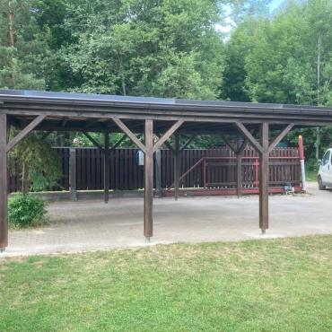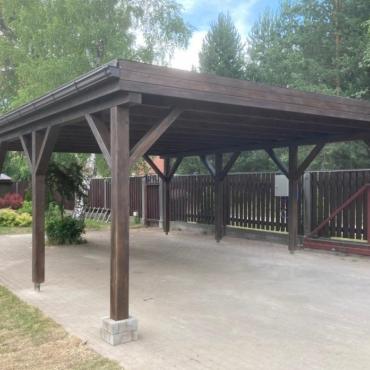 - Каркас навеса изготовлен полностью из клеенново бруса (конструкция на 70% прочнее чем из массивново бруса):