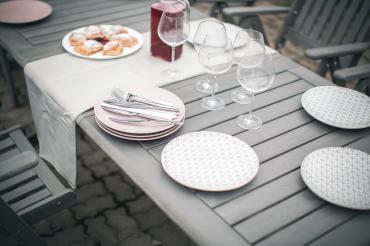 - Этот стол с дополнительной секцией привлечет внимание ваших гостей и предоставит вам ощущение роскоши на террасе или в саду.