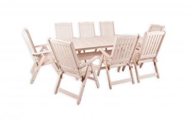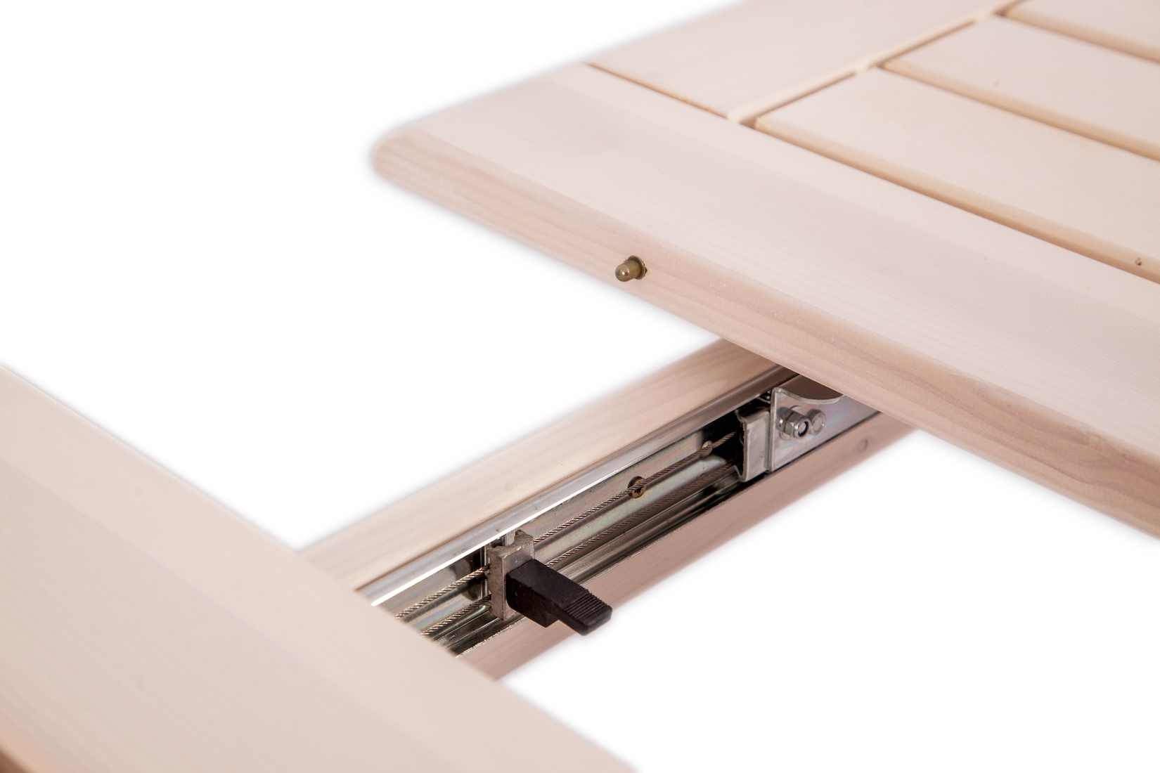 - Раздвижной стол с дополнительной секцией + 8 складных стульев с регулируемой спинкой.