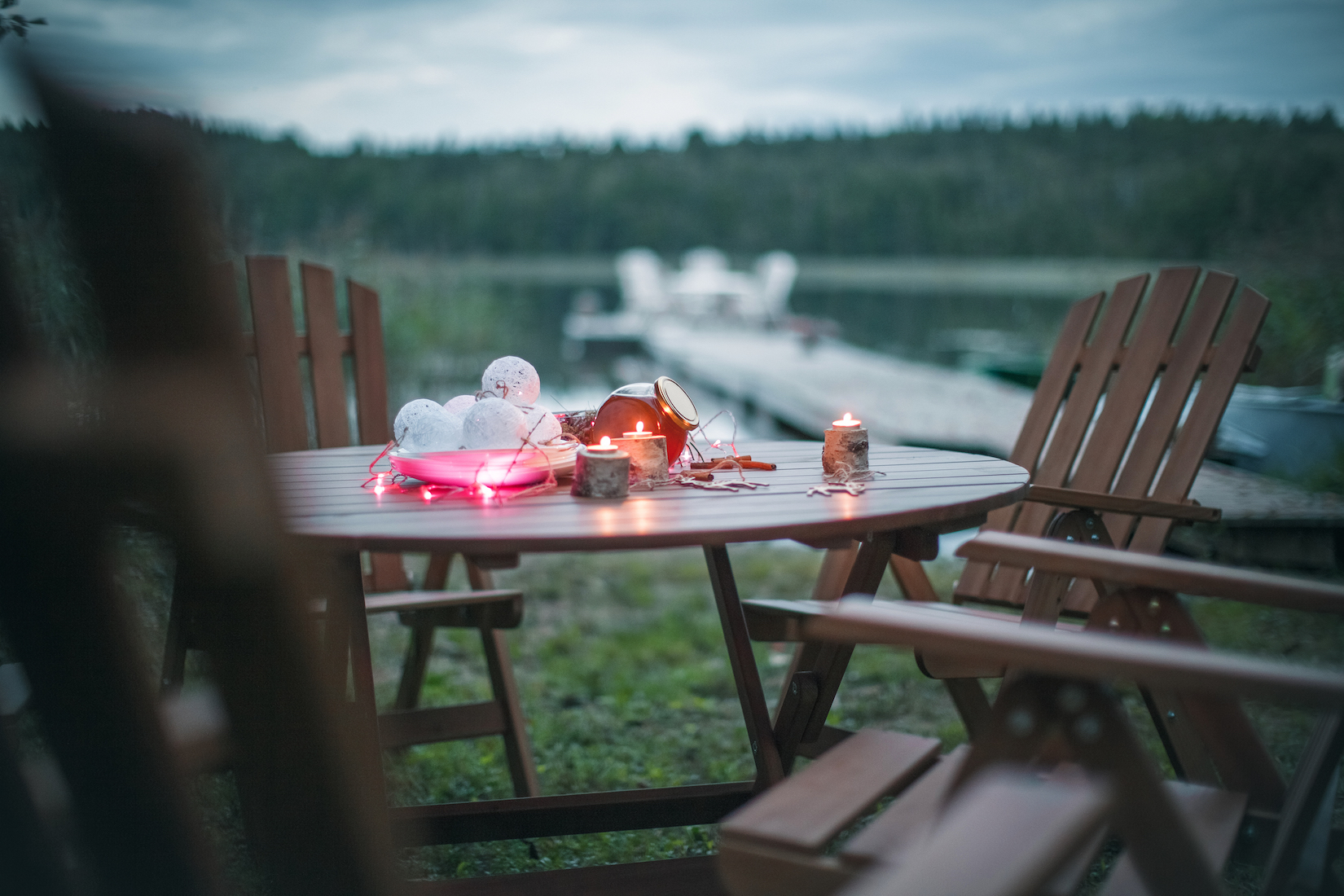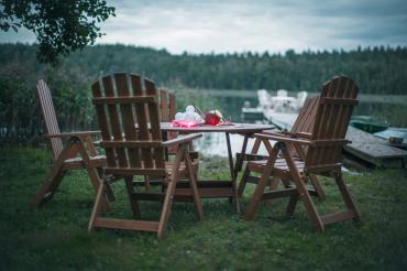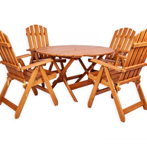 - Круглый раскладной стол + 4 раскладных стульев с подлокотниками и регулируемой спинкой.