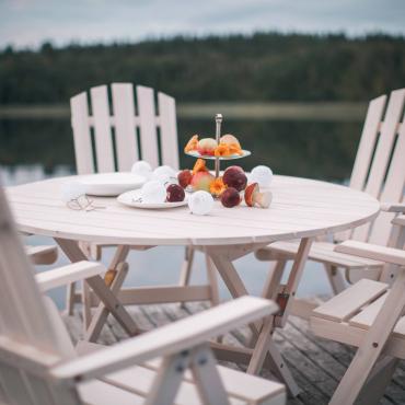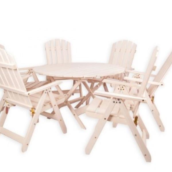 - Круглый раскладной стол + 6 раскладных стульев с подлокотниками и регулируемой спинкой.