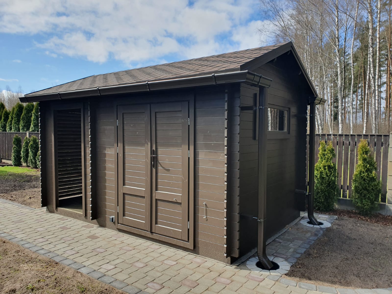 - Деревянные панели жалюзи для дровницы;