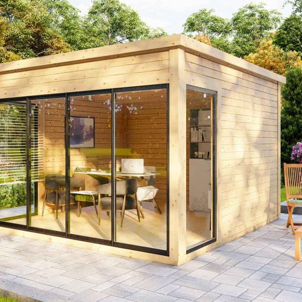 Dārza māja, dārza birojs, vasarnīca, lapene, oranžērija – mūsu jaunā moderno mājiņu sērija ar visplašāko pielietojumu ! Šī gaisīgā telpa ar atbīdāmām stikla sienām ļaus baudīt saules siltumu un vasaras burvīgās smaržas nepieceļoties no sava iemīļotā atpūtas krēsla, vai dīvāna. Tomēr, vēsākos laika apstākļos durvis ir ērti aizbīdāmas, norobežojot no vējiem un aukstuma, bet saglabājot brīnišķīgos skatus uz Jūsu dārzu un apārtni!