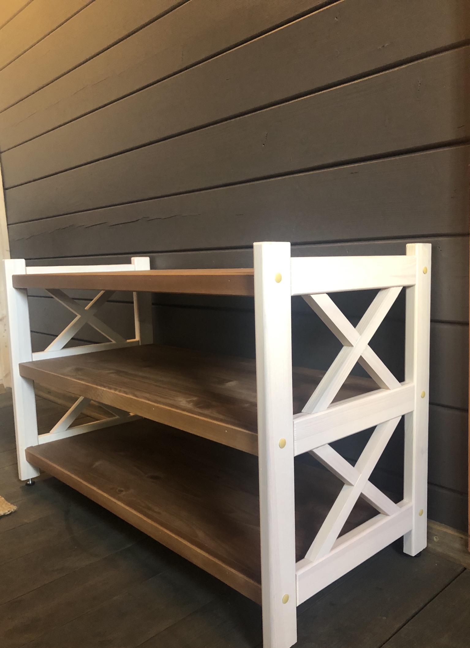 - Полки изготовлены из натуральной древесины сосны.