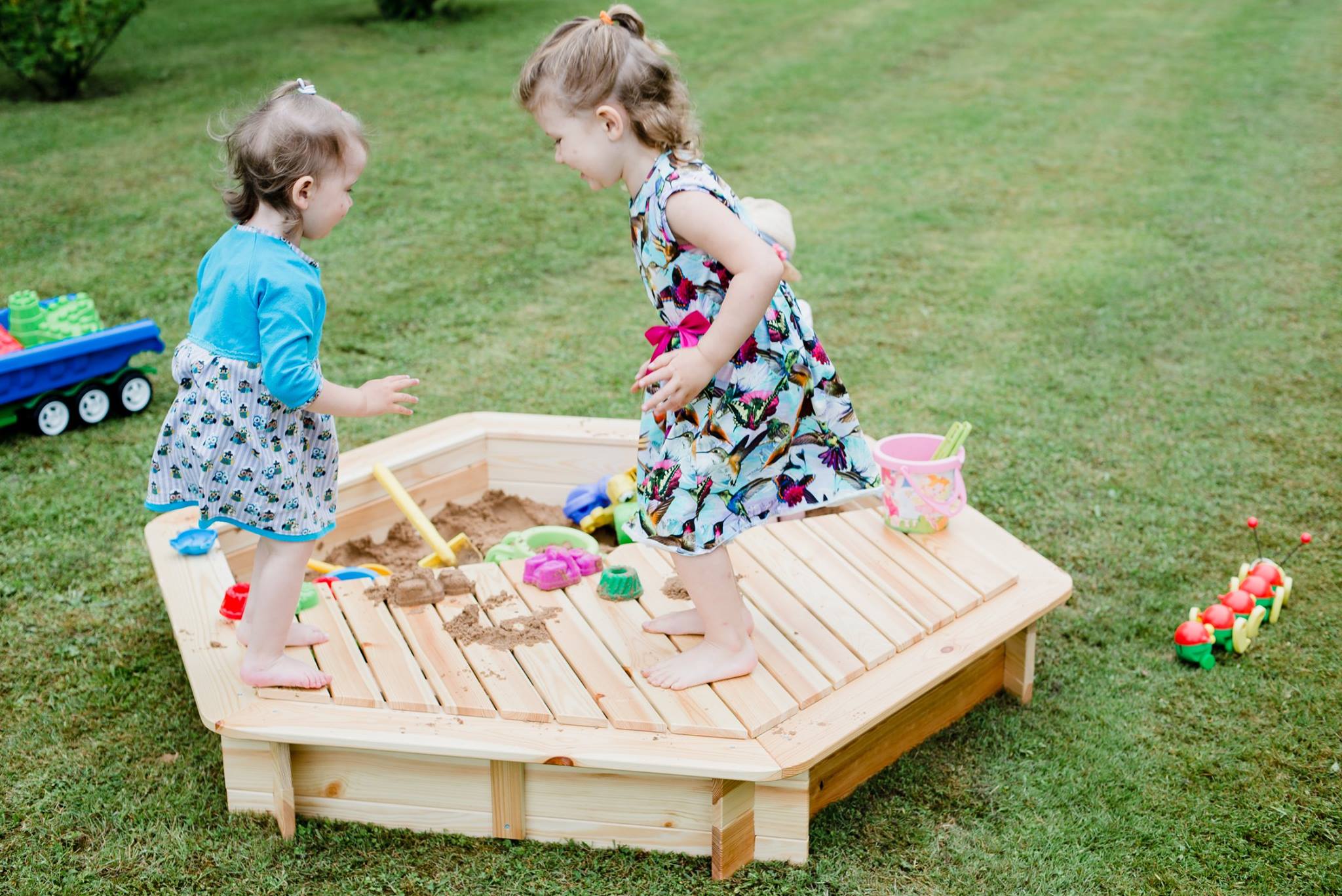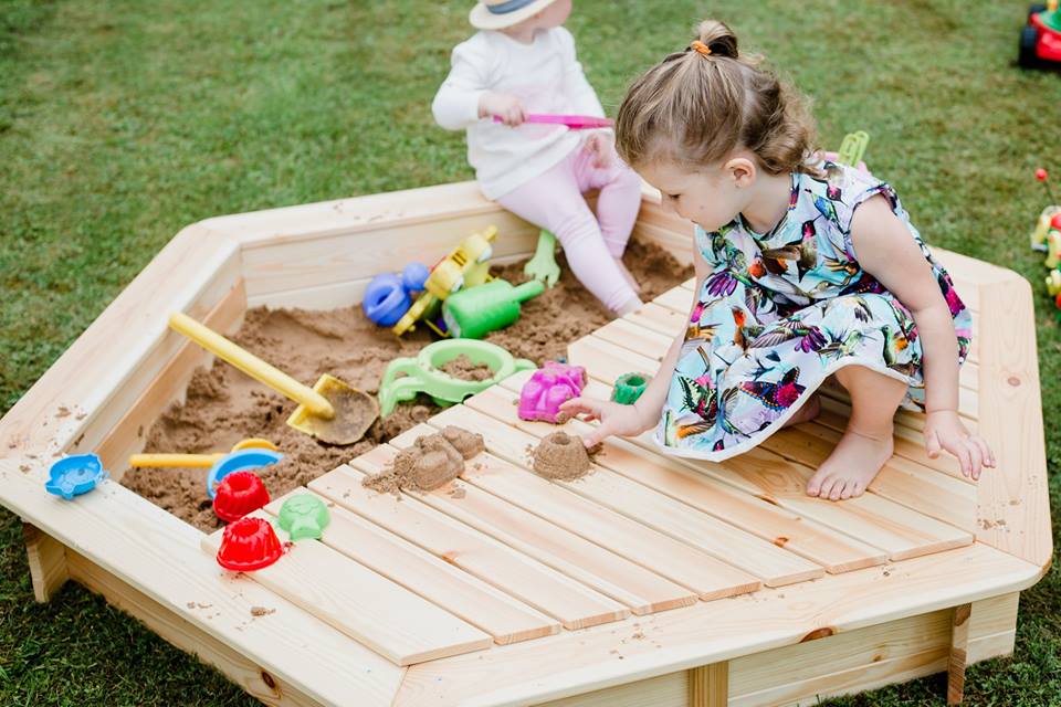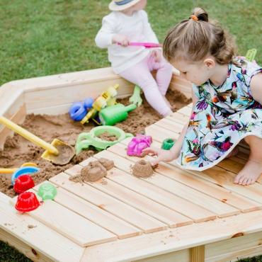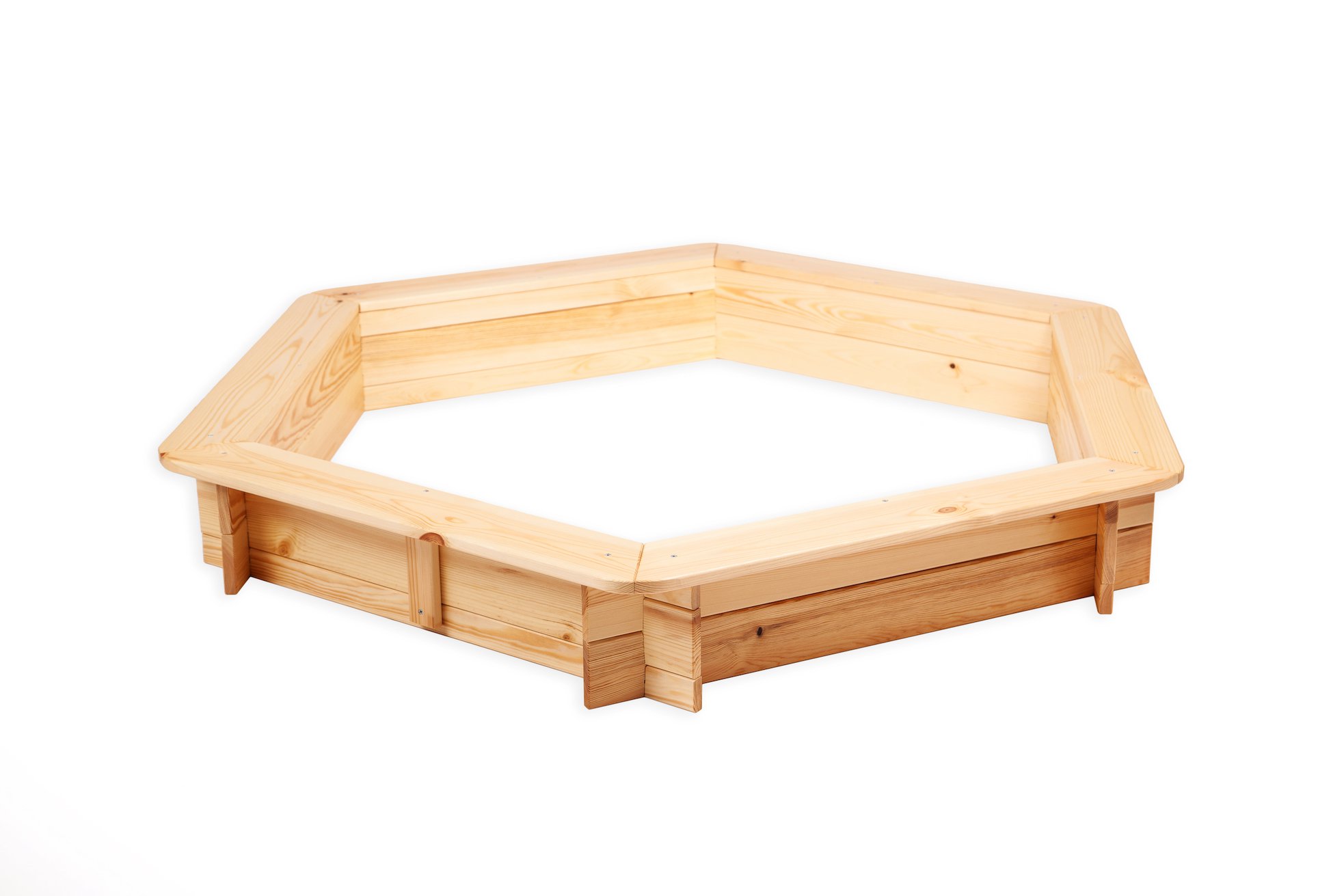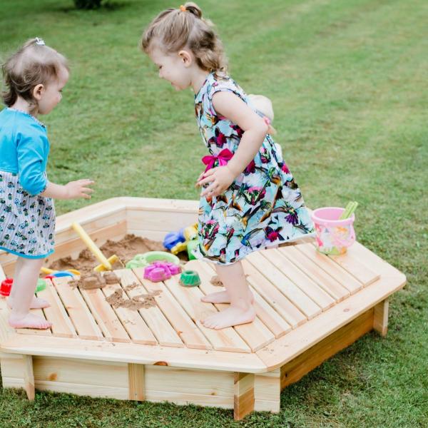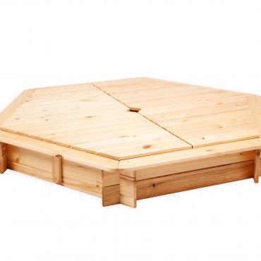 - Простая, классическая шестиугольная песочница со съемной крышкой.