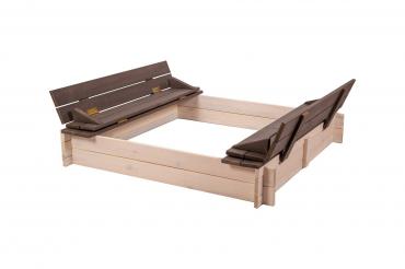 - Песочница оснащена крышкой для поддержания чистоты песка, крышка при открытии превращается в сиденье.