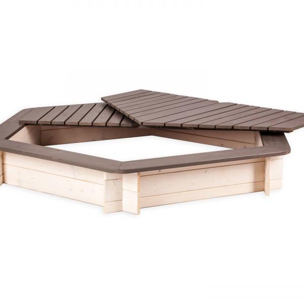 - Простая, классическая шестиугольная песочница со съемной крышкой.