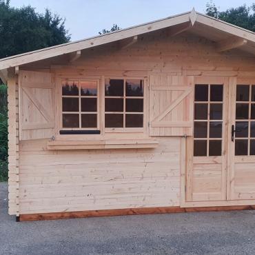 - Stikla logs līmēta koka rāmī ar metāla ārejo palodzi;