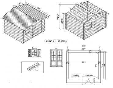 - Stikla logs līmēta koka rāmī ar metāla ārejo palodzi;