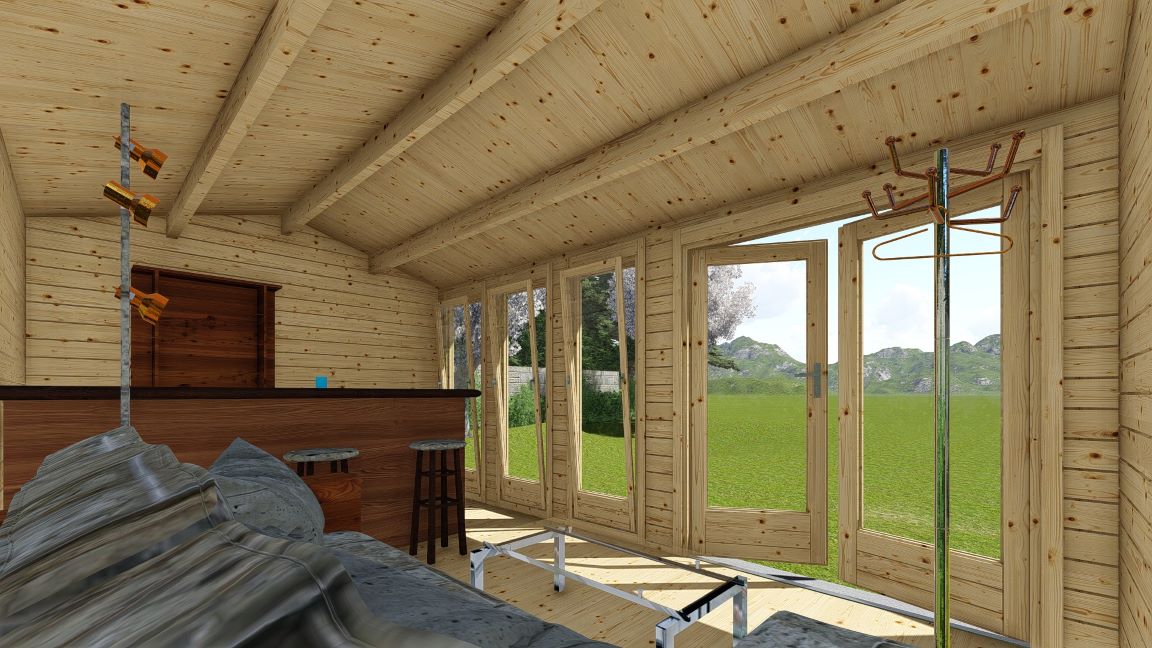 - Grīda no 19 mm dēļiem, grīdlīstes;