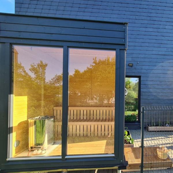 Piedāvājam mūsu jauno āra pirts moduļu sēriju, kas apvieno modernu dizainu un īpašu funkcionalitāti. Šie modernie pirts moduļi izskatās tikpat labi gan no iekšpuses, kā no ārpuses, apvienojot komfortu un mūsdienīgumu, tajā pašā laikā saglabājot mūsu pirts tradīcijas un ekoloģiju, jo šīs pirtis ir veidotas tikai no koka kombinācijā ar augstākās kvalitātes papildmateriāliem. Moduļi jau standarta komplektācijā tiek piedāvāti ar siltinātām sienām un jumtu. No ārpuses saunas apdarē izmantoti 18mm priedes vagondēļi, bet iekšpusē apdare veikta ar 12mm priedes vagondēļiem. Pamatkomplektācijā ietilpst augstākās kvalitātes apses, vai melnalkšņa lāvas soli ar atzveltnēm !