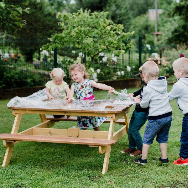- Šis galds būs lieliski piemērots, lai varētu patverties no saules stariem un baudīt siltās vasaras dienas, spēlējoties ar lego klučiem un citām rotaļlietām, kā arī Jūs bērns varēs baudīt maltīti un limonādi kopā ar draugiem.