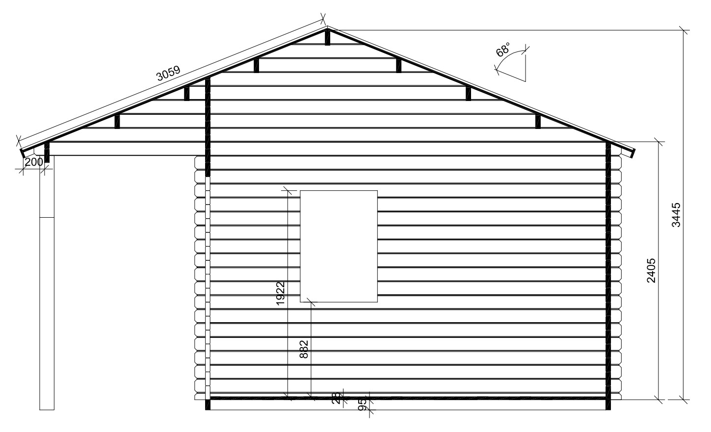 - Jumts no 19 mm spundētiem dēļiem, vēja dēļi;