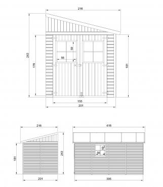 - Izmērs samontētā veidā H243x216x416cm