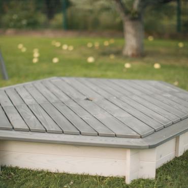 - Vienkārša, klasiska sešstūra smilšu kaste ar noņemamu vāku.