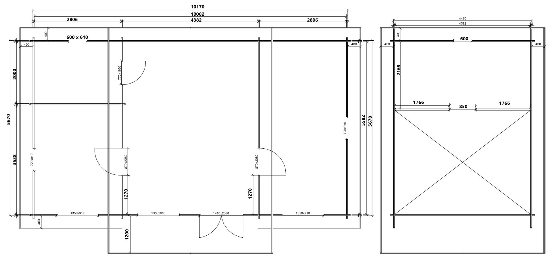 - Koka rāmju logi un durvis ar stikla paketēm;