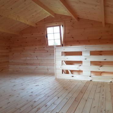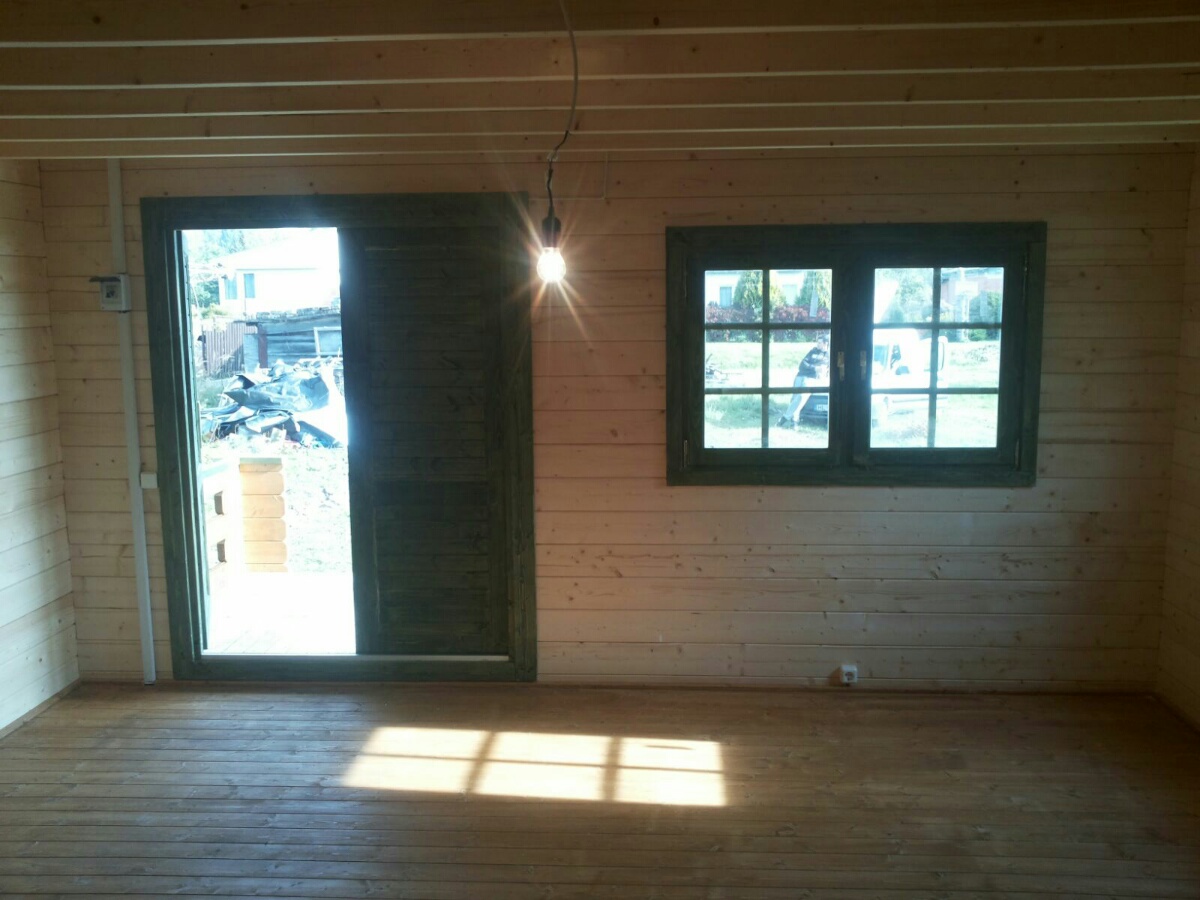 - Grīda no 19 mm spundētiem dēļiem, grīdlīstes;