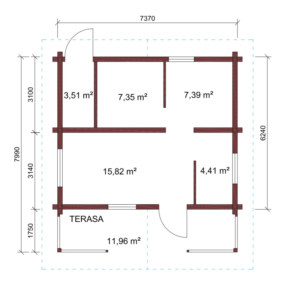 - Iespējama ārsienu siltināšana no ārpuses, vai iekšpuses (koka karkass pildīts ar akmensvati, vai ekovati, apdare ar frēzbaļķi imitējošiem dēļiem, vai cita veida materiāliem).