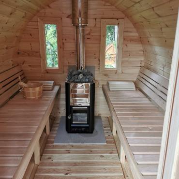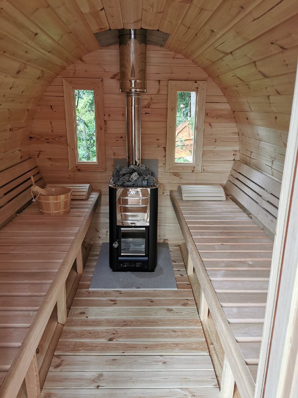 - Дровяная печь Harvia Pro 20 ( 24,1 kW) с топкой из внутри, с дымоходом и камнями;