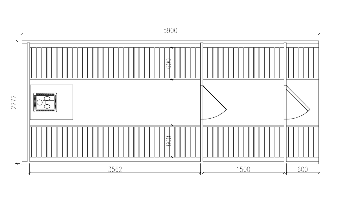 - Длина террасы: 0.6 м ( в место террасы можно увелитить длину парилки или переодевалки на 0.6 м без дополнительной платы )