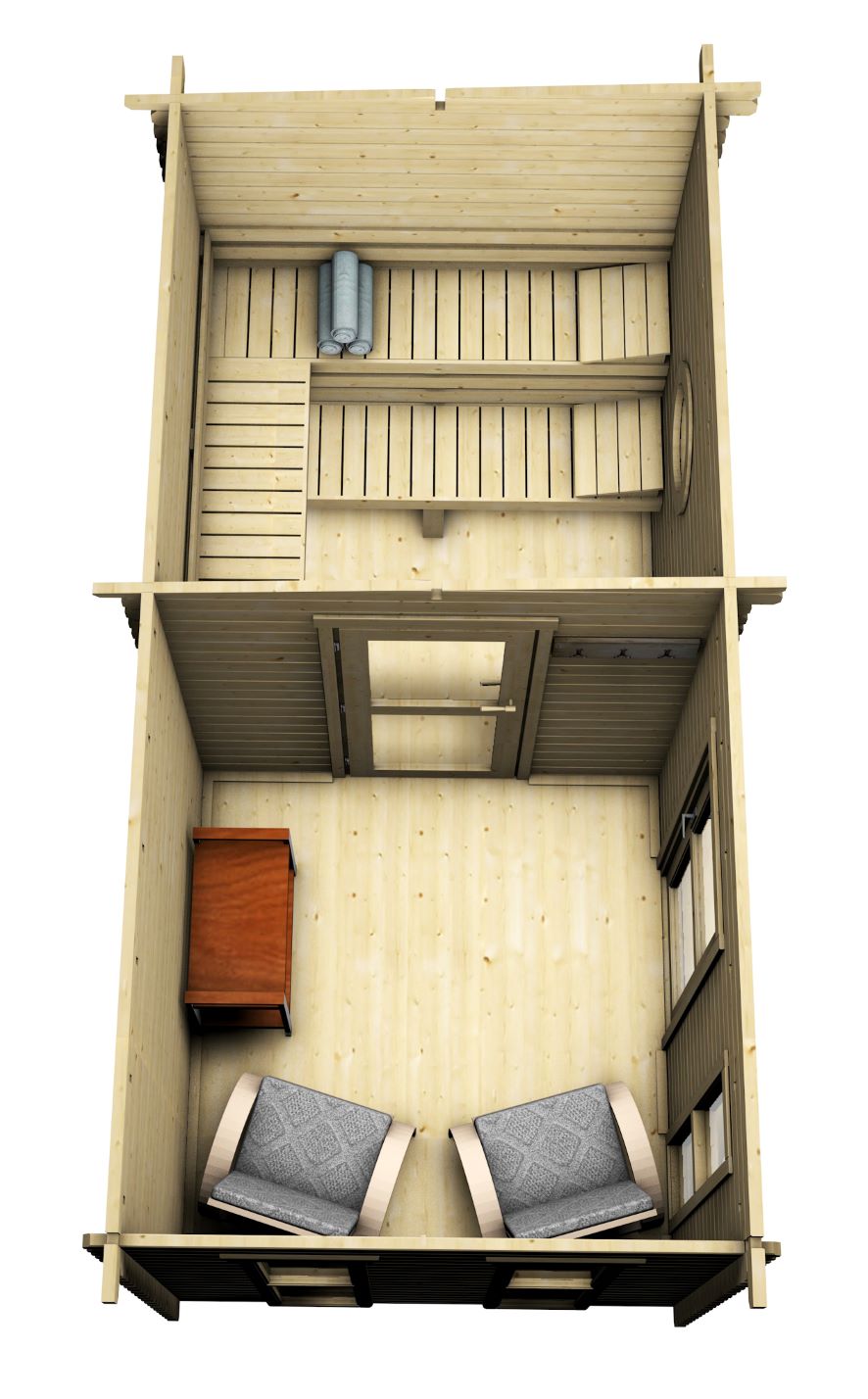 • Двери парилки из клееного дерева с закаленным стеклом;