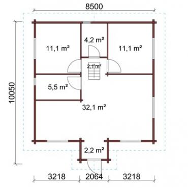 - Наружные и внутренние стены из профилированново клеенново бруса с крестообразными соеденениями или соеденениями городсково типа. Возможны каркасные перегородки;