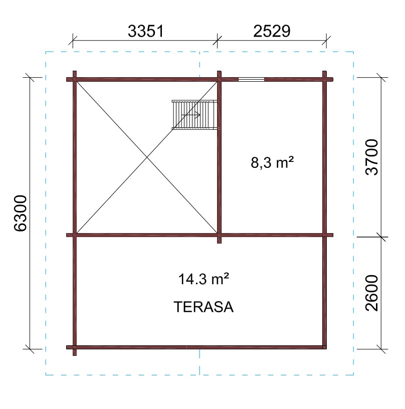 - Наружные и внутренние стены из профилированново клеенново бруса с крестообразными соеденениями или соеденениями городсково типа. Возможны каркасные перегородки;