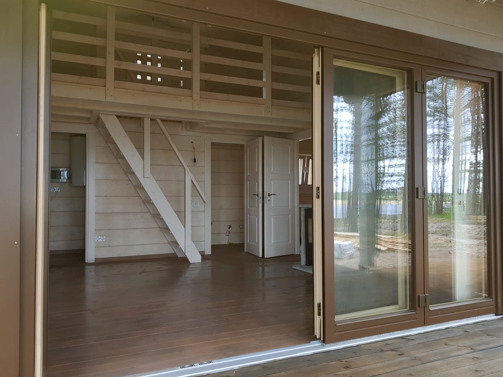 - Цена раздвижной витрины дополнительно 3600 (с НДС) - Рама 90мм, тройной стеклопакет, заводская покраска, наличники из обеех сторон.